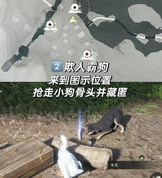 获取方法:下图位置可以发现一只小狗,偷走他的骨头并藏起来,可以获得成就