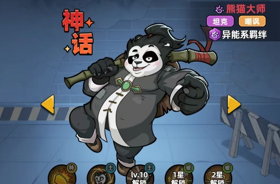 熊猫大师是既有超高坦度,又能为队伍中的异能系队友提供加成的异能幸存者。释放战技时,它可使用醉拳攻击周围的敌人,并为自己回复血量,而且被它攻击到的敌人会被施加异能易伤,受到的异能伤害会额外提升10%。最重要的是,熊猫大师的大招可嘲讽住周围敌人。