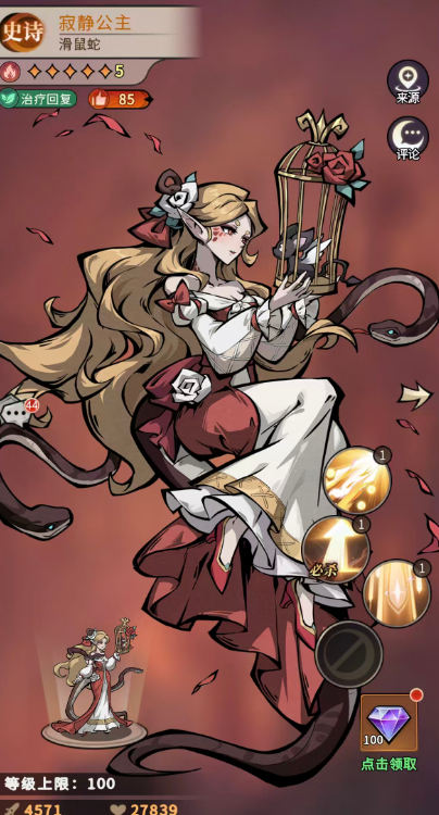 另外一个技能叫做聆听诉求,是一个群体的治疗,可以恢复己方生命百分比最低的4名友方单位等同于攻击81%攻击的生命,最高的时候是达到98%攻击的生命回复,不过这一版是在蛇灵达到8星的时候才可以升级上来的,而寂静公主身上的被动就是滑鼠蛇体质,是可以提升10%生命和5%攻击能力,后期三级的时候就是20%生命和10%攻击的提升,这是达到10星的时候会自动升级到的增益,这个时期的寂静公主用来组队能够保存的队内生存效果更强,如果要组队的话,大家可以为寂静公主搭配一个小小白雪,这样就可以保证小小白雪在输出群伤的时候有足够的场内生存时间。
