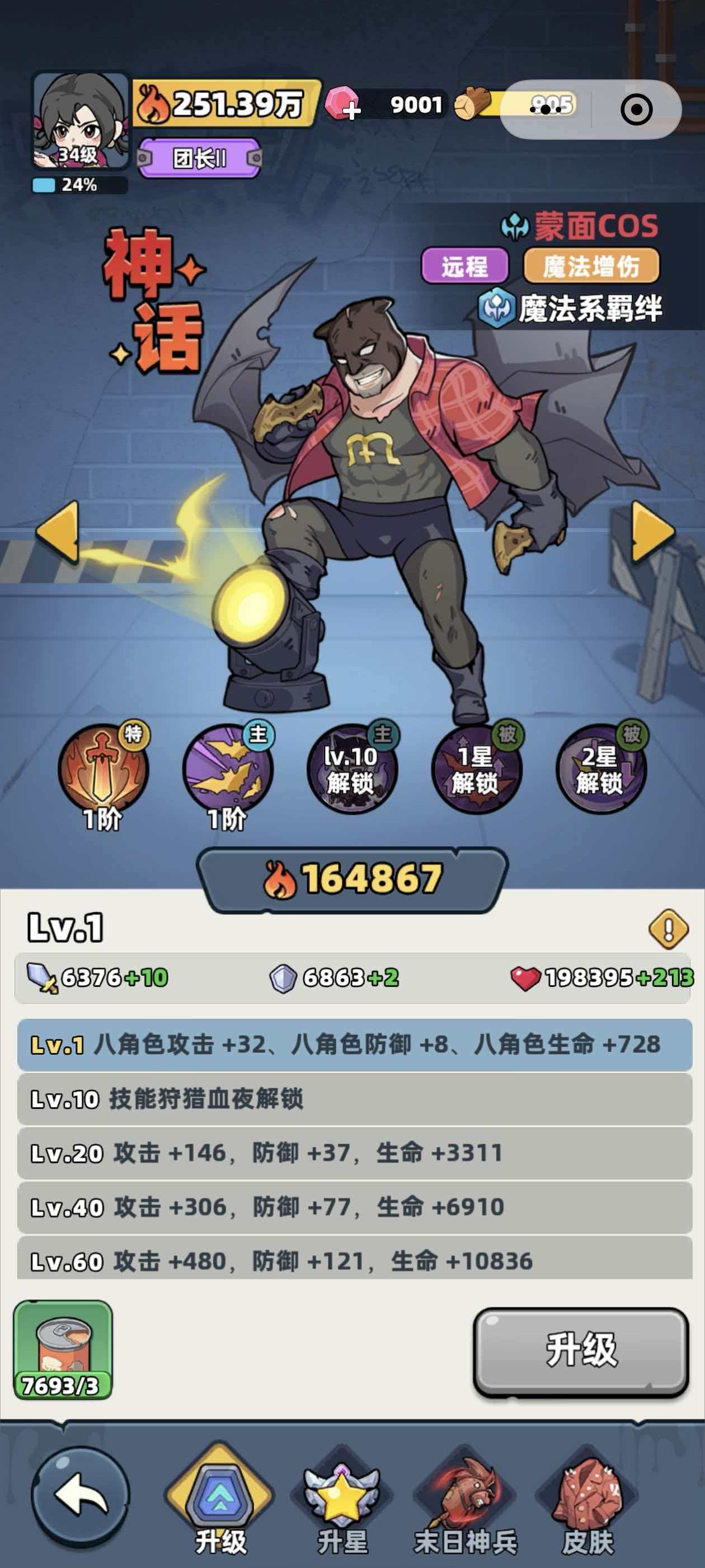 蒙面cos所属的远程职业特性为所有的伤害都能够增强25%,而幸存者特性则是可以让自身打出的魔法伤害增强10%,他的技能分别是战技寻血蝙蝠、大招狩猎血夜、被动技能夜影幽冥。