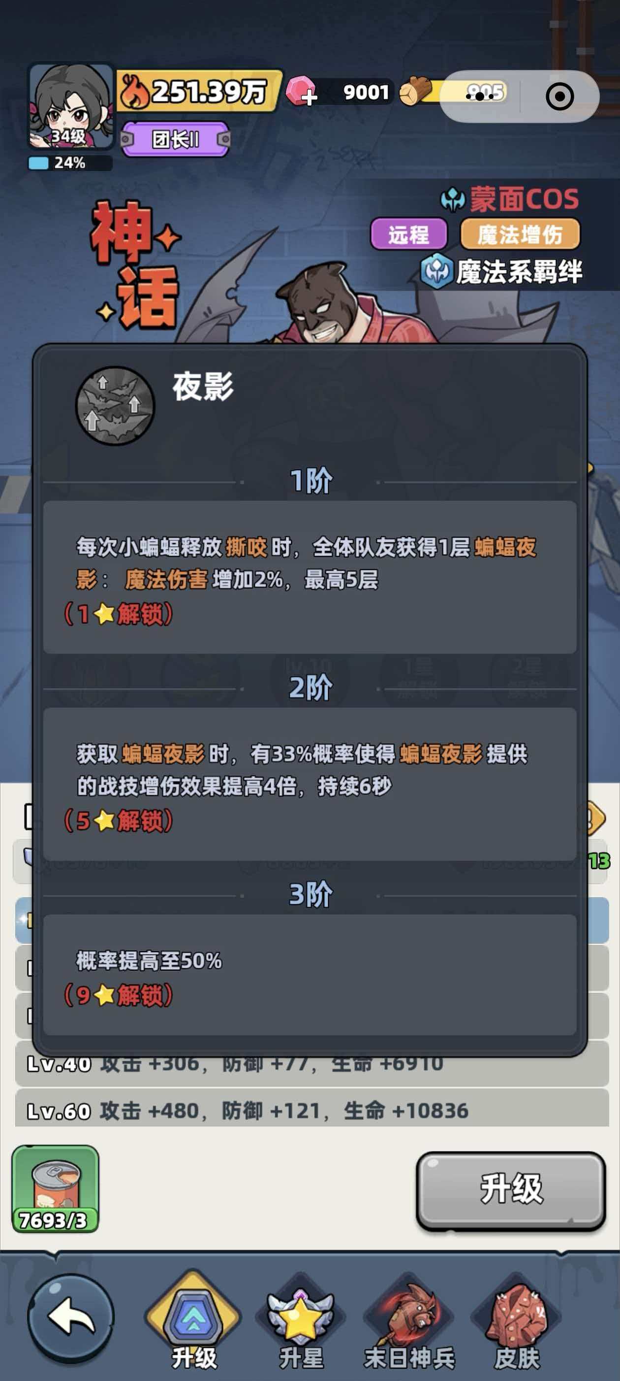 夜影技能会在小蝙蝠对敌人进行撕咬的时候被动触发,小蝙蝠撕咬敌人时,我方的全体队友都能够获得1层蝙蝠夜影的状态,该状态下队伍中的魔法系英雄所造成的魔法伤害会增加2%,最高能够叠加到5层,幽冥这个技能则时当吸血小蝙蝠所造成的伤害高达100%的时候,小蝙蝠跟随的角色生命值就会得到恢复,还能够进入到吸血小蝙蝠的状态。