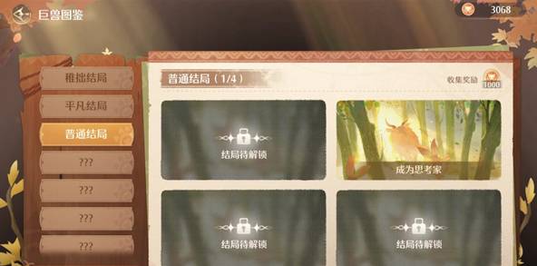 1、第一只巨兽,完成结局【时光凝固在童年】,达成条件总值<600。