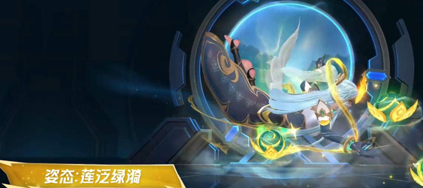 4、皮肤特色:包含专属技能特效、阵亡 / 复活演绎、独特姿态 "莲泛绿漪"、家园卫士特效等