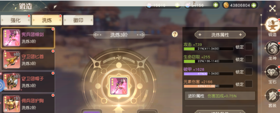 强化系统构成装备养成的第一层基础。所有基础装备均可消耗强化石进行等级提升,资源获取途径覆盖日常活跃任务、装备秘境挑战、离线挂机收益及周期性运营活动。关键机制在于:更换同部位装备时,原强化等级可全额继承至新装备;当全身7件基础装备强化等级均达到指定阈值,即可激活“强化达成”额外属性加成。洗练系统则负责深度挖掘装备潜力——首条洗练属性槽位免费开启,后续槽位需消耗绑定钻石解锁;使用通用洗练试剂或对应品质专用试剂,可随机生成不同词条组合。值得注意的是,洗练属性在装备更替过程中同样支持无损迁移,保障培养资源零损耗。