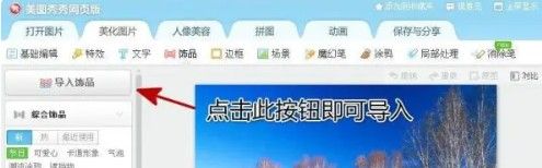 进入顶部菜单栏的“美化”选项,选择“饰品”分类。