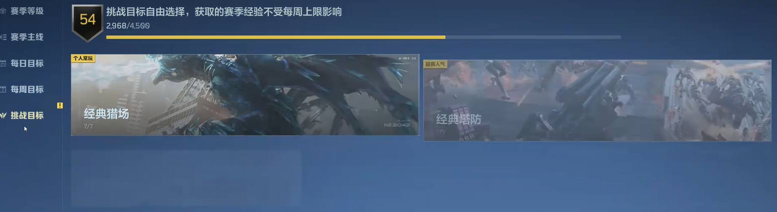 先说任务这一块,这是前期获取经验的主要途径。游戏里面的任务分成好几种,有每天刷新的日常任务,也有按周计算的周常任务,另外还有赛季主线跟挑战类的任务。这几种任务的优先级是不一样的,日常任务应该放在第一位去完成,因为这类任务难度普遍不高,基本上打个两三局就能全做完,给的经验却相当可观。