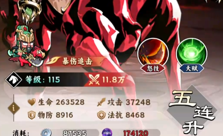在阵容构建方面,关羽与五虎将体系高度适配。建议围绕该组合集中堆叠追击伤害属性,以激活叠加型追击机制——每次成功触发追击,后续追击概率将阶梯式提升,从而形成高频连击输出链。当五虎将全员齐备时,第六位推荐配置刘备,可进一步提升全队10%伤害;其他兼容性较强的辅助或控制型武将亦可作为备选方案。