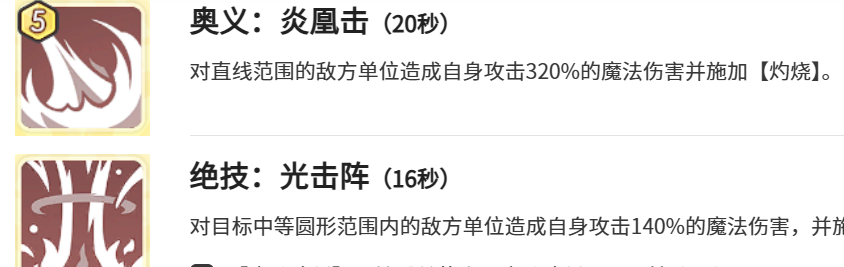 梅琳娜的技能主要是围绕火焰输出,还有状态增益。天赋是核心的竞争力,一级就可以让首次的炎凰击获得50%的奥义增伤,配合7级解锁的N次状态附加模仿降低效果,一下子就可以撕开敌方的防御。四级天赋让元素反应后可以获得试剂和二级天赋的士气还有斗志结合在一起就能触发恩赐状态,然后形成闭环。持续强化输出的能力,进一步提升攻击效果,给团队创造出很好的输出环境。