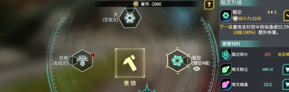 接着是铭文,对于觉醒者来说,他们是自带爆属性的,与星纹属性相同,每个觉醒者有6个铭文槽,建议大家优先去携带爆属性的铭文,而新人类阵营的铭文在出生时会携带水与土两种属性,前者提供回血,后者生成防御护盾,二者相互作用,能够让新人类阵营的角色生命力变得更加顽强,不过,玩家倒是不需要拘泥于出生的属性,可以选择与武器同属性的铭文,如果没有的话,可以选择氪金购买。