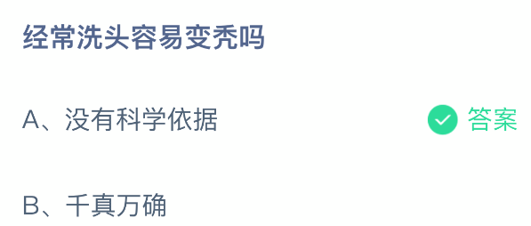 经常洗头容易变秃吗?支付宝小鸡课堂开课啦!每天花一分钟答题赚饲料,喂喂小鸡就能贡献爱心啦!轻松又意义十足!2026年1月24日蚂蚁庄园的小鸡课堂题目正确答案是【没有科学依据】,经常洗头容易变秃这个说法没有科学依据。