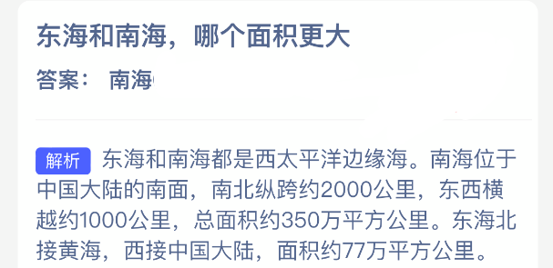 以上就是东海和南海,哪个面积更大?神奇海洋今天答案最新2026年1月23分享,更多相关攻略内容,请点击关注更新!