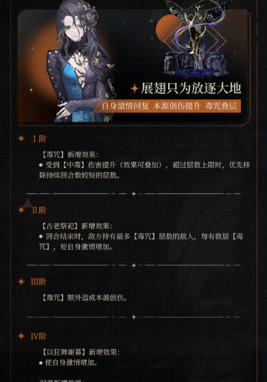 重返未来1999笃笃骨狂想大幅强化毒咒:毒伤随层数提升,超上限时优先移除短回合层数,并附加本源创伤。同时大幅优化激情回复,大招吟诵期间可根据敌方最高毒咒层数额外获取激情,吟诵结束也能获得。