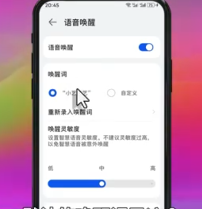 进入设置 > 智慧助手 > 智慧语音 > 语音唤醒,开启开关并录入唤醒词(默认“小艺小艺”)。