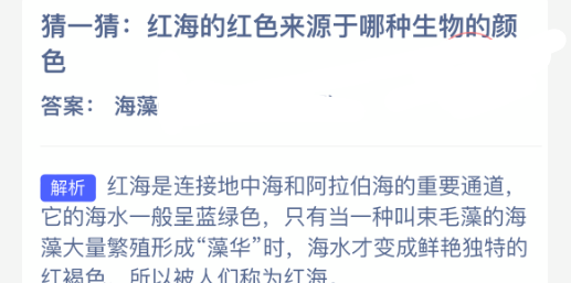 以上就是猜一猜:红海的红色来源于哪种生物的颜色?神奇海洋今天答案最新2026年1月25分享,更多相关攻略内容,请点击关注更新!