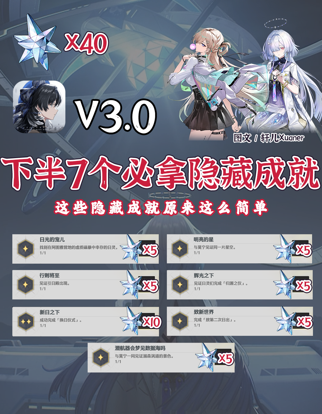 以上就是小编整理带来的鸣潮V3.0下半隐藏成就有哪些,V3.0下半7个必拿隐藏成就一览,更多相关游戏攻略,请关注!