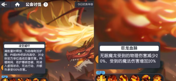 魔龙的凌空威胁技能一旦在释放时就会附加护盾。在8秒之后就会造成全屏巨额伤害,而如果玩家在这一个阶段可以击破护盾,就可以让魔龙进入到虚弱的状态,额外的承受100%的伤害。这就是输出的黄金窗口期,另外巨龙血脉可以让他物理减免20%、魔法伤害承受增加20%。因此阵容的核心就应该围绕魔法输出去创建,单体爆发型的魔法幻灵就是主要的选择。