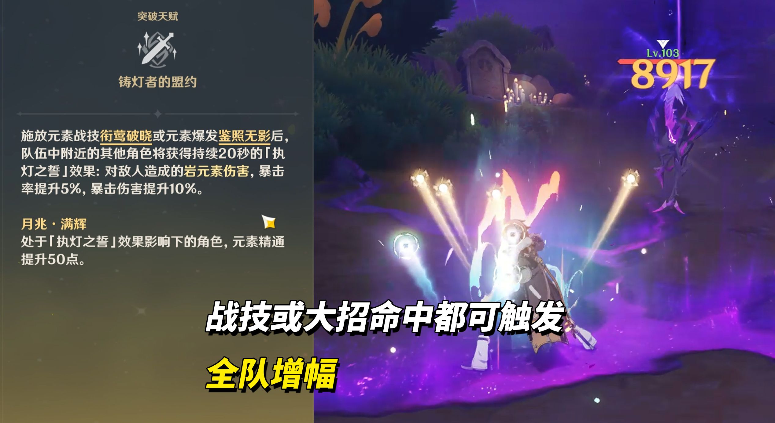 此外叶洛亚在施放战技或元素爆发后,提供20秒的「执灯之誓」效果: