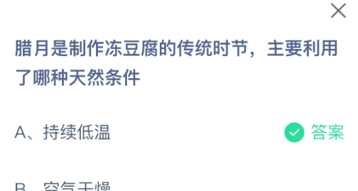 以上就是腊月是制作冻豆腐的传统时节,主要利用了哪种天然条件?支付宝蚂蚁庄园2026年1月29日答案最新,更多相关攻略,请关注3dm手游网更新!