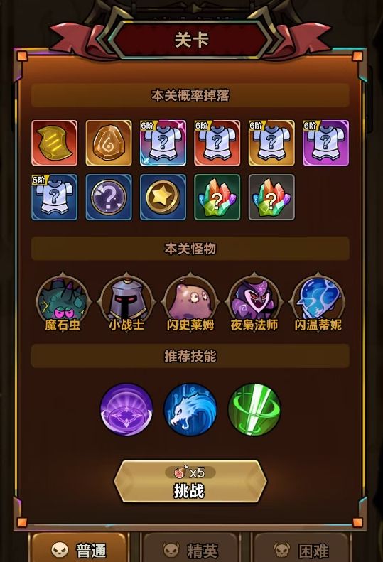 玩家每次闯关都能拿到装备、宝石、元素经验等资源,是玩家获取基础资源的核心渠道,但要注意每次闯关都需要消耗5点体力,没有体力时无法进行闯关。
