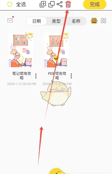 3、弹出页面后选择笔记点击删除的按钮就可以了。