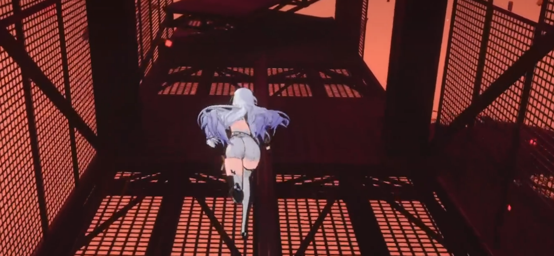越过缝隙继续往前走,前方会看到一个红色的铁笼子,准确来说应该是铁管道搭建成的结构。爬到铁笼子上面站稳,然后从笼子顶部的木板往回跳。跳上去之后会落在一根管道上面,沿着管道走到尽头,那里有一根石头柱子。