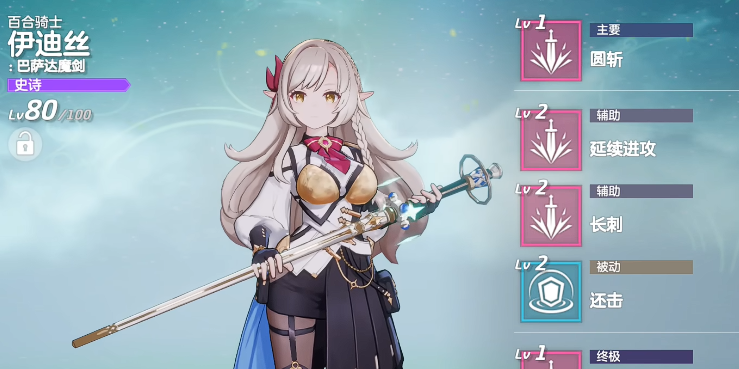后期的支援技能是清唱剧合格,在战斗一开始的时候就会根据当前充电状态的敌人,来造成队长精灵攻击力上面220%的伤害,如果队长精灵是伊迪丝的话,那么这个效果会给伊迪丝带来一些攻击加速,还有暴击上面的增益,所以如果用伊迪丝跟黑伊兹尔放在一起用,显然能力是会更好一些。