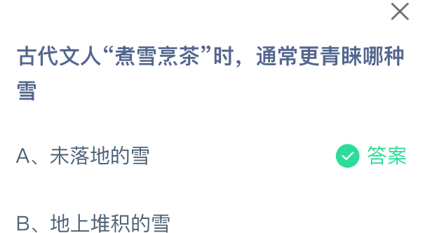 以上就是古代文人“煮雪烹茶”时,通常更青睐哪种雪?支付宝蚂蚁庄园2026年2月2日答案最新,更多相关攻略,请关注3dm手游网更新!