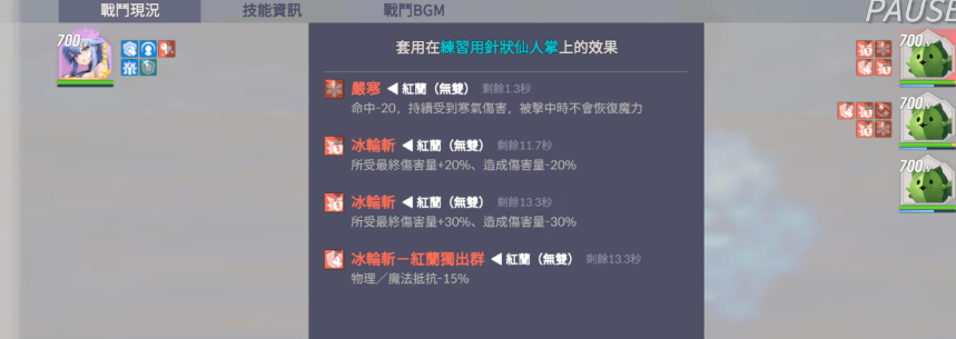红兰正好也是很多玩家都喜欢的角色,当前使用双冰轮斩技能的时候,她会将自身手中的武器带来横扫的技能效果,其实横扫周边的话,就会对周边3m当中的所有敌人都造成275%的伤害,此时伤害成功之后,受到红兰攻击的这个目标,15秒之内受到的所有伤害都会最终在增加15%的数值,而在这里这个目标对我方进行输出的伤害,我方角色身上也会减少15%,所以后期用起来的话,冰轮斩战斗能力相对来说是会给敌方造成增加伤害,给我方带来减少伤害的能力,放在这里用的话,她的基础技能绝对是有大部分影响的。