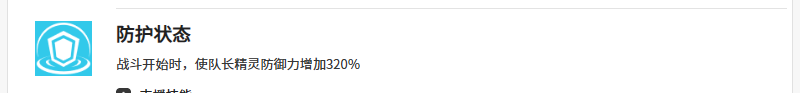 另外她在防护状态当中可以带来的支援能力也是不少的,只要克罗伊在战斗一开始的时候站在队长位置旁边,这里就可以利用技能效果来给队内的精灵带来防御力增加320%的数值,所以此时给我方带来的防御能力绝对是有非常高的数值,就是没有其他任何的协同技能可以使用,所以带来的队长能力比较简单,一如果大家能够为克洛伊搭配自身的遗物埃癸斯的话,那么在这里还可以带来信念之盾的能力,这个信念之盾触发成功,可以让她在使用自己主要技能不屈不挠的意志时,根据技能效果来追加一次体力上限10%的伤害,那么后续持续的时间能够达到14秒的效果。