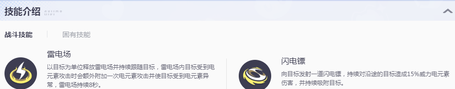 从技能方面,天使耶的每一个技能都是很有用的,固有技能雷电场就等同于是团战的核心,是将目标作为中心,释放之后就会持续的跟进。范围内的敌人在受到电元素的攻击之后,不仅会有额外的电元素伤害,还会陷入到电元素异常状态中有一个8秒的持续时间,就可以覆盖关键的输出阶段。搭配队友的协同攻击,就可以打出可观的连锁伤害。闪电标则是主力的输出技能,会释放一道电光,对于沿途的目标就会造成66点威力的电元素伤害,还会持续的吸附敌人。
