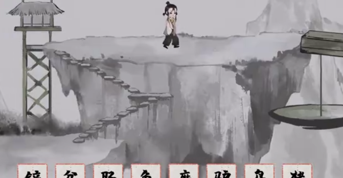 《栖云异梦:梦蝶》第五关“人烟”需在老伯处收集【铲】、【盆】等六件物品,在眺望台与平台分别获取【鸟】与【猪】。解开天平谜题:左盘放【鱼】和【铲】,右盘放【盆】。随后取走【铲】备用,并用【炊】拆出的【火】烧掉拦路木头。最后将【铲】与【肠】拆解组合为【钥】,为小女孩打开大门即可通关。
