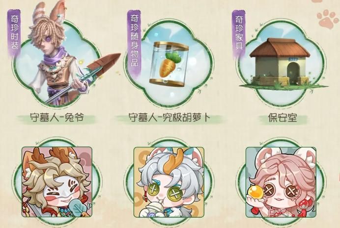 其中,特殊宝物具备双重用途:既可出售兑换金币,也可赠予联动角色(如兔爷、四不像、天禄、吐宝鼠等),触发专属剧情事件,呈现神兽群像的趣味日常互动;普通宝物则统一售出转化为金币,用于参与联动专属抽奖,奖池涵盖守墓人-兔爷奇珍时装、守墓人-究极胡萝卜奇珍随身物品、保安室主题家具、个人动作、头像框、线索以及碎片等多类道具。
