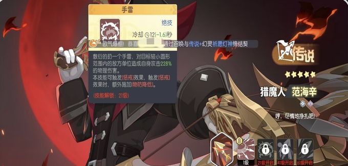 还有一个绝技手雷,可以造成小范围的攻击能力,还可以帮助自己触发承惩戒效果,抵御35%的物理防御,还有一个秘密技能恶魔弩箭,可以给敌人带来更加高额的伤害,后续还可以触发50%的惩戒效果,在实际作战当中,他的特效技能时间可以提高16%的攻击速度,玩家们每一次释放奥义来叠加相应的能力,可以在实际作战搭配攻击速度,操作也会更好上手,这个角色也很适合大家在奇景攻击的时候,防御作战来使用。