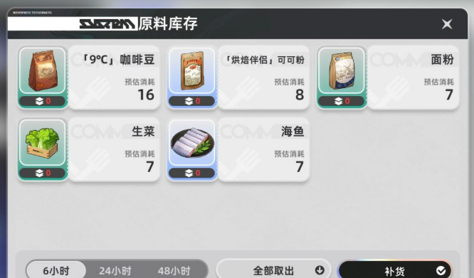 材料采购这事看着不起眼,实际上直接关系到店铺能不能正常运转。左下角有个供应链的按钮,点开之后,可以选择24小时配送服务。虽然这服务会多收5%的配送费,但是省去了手动采购的麻烦。咖啡豆和可可粉这两样东西,建议保持够用3天的库存量,因为用得比较频繁。薄荷和面粉就不一样了,这俩保质期比较短,控制在1天的用量就够了。