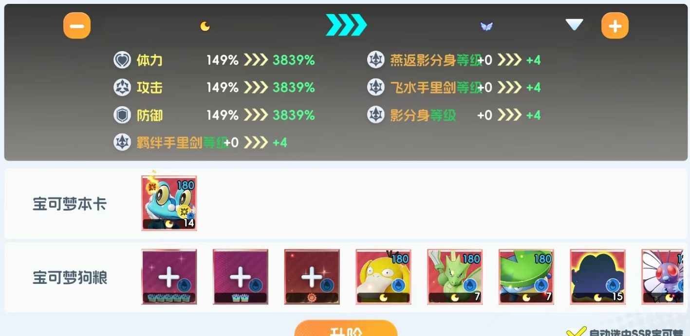 要想在宠物集结里获得超级甲贺忍蛙,玩家们需要帮助呱呱泡蛙完成MEGA进化,才能令它从原本的SP级变为UR级,成为超级甲贺忍蛙。这一过程所需的养成素材非常多,人们需准备好14只呱呱泡蛙的本体,以及1只皇冠5阶的宝可梦,1只皇冠2阶的宝可梦、1只宝可梦以及43只月亮1阶的宝可梦,且所有宝可梦素材均为雨属性,否则无法帮助呱呱泡蛙进行升阶。除此之外,超级甲贺忍蛙的MEGA进化卡也必不可少,该道具需要在MEGA兑换商店开启后才能换购。准备好这一切后,等呱呱泡蛙进化到可开启MEGA进化的品阶后,便能消耗超级甲贺忍蛙的MEGA进化卡来令呱呱泡蛙完成最终的进化了。