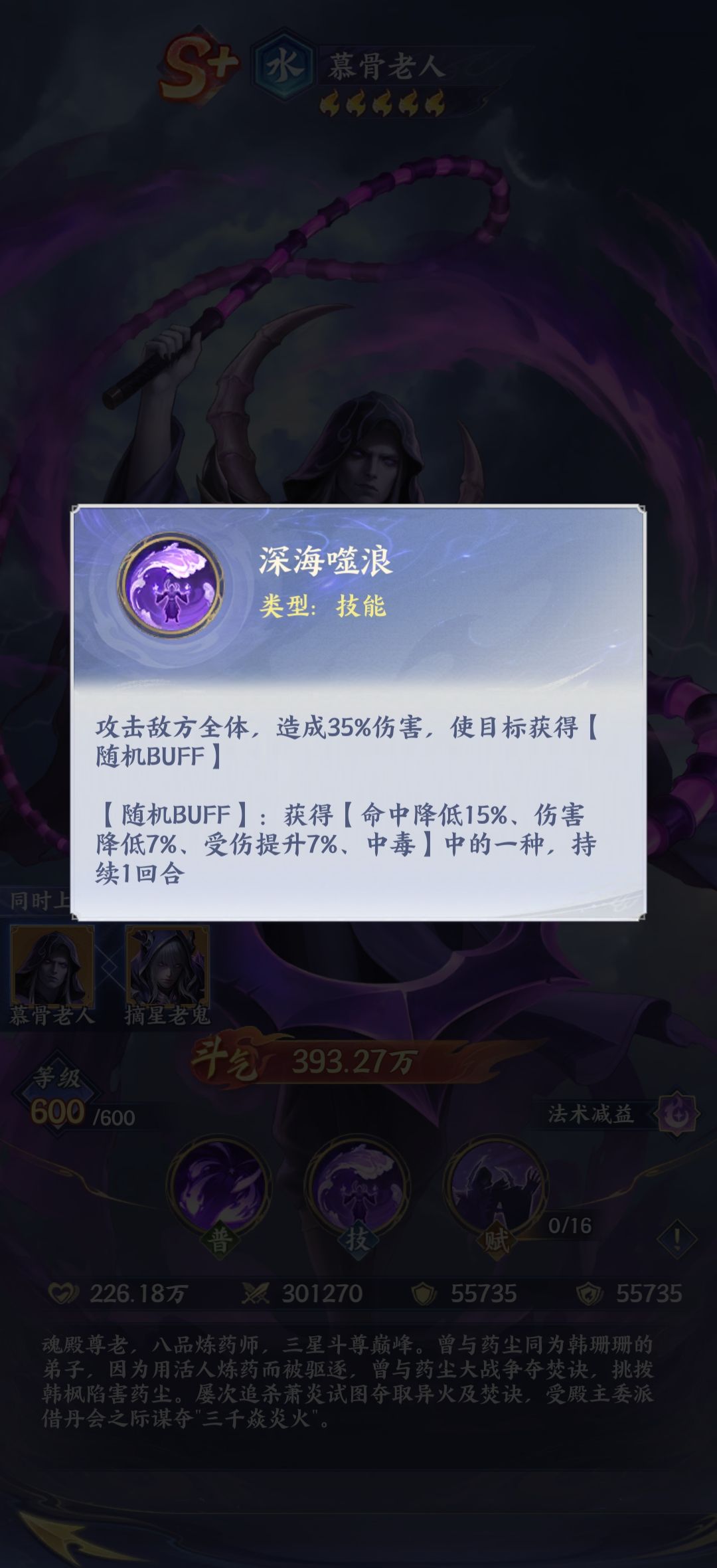 如果玩家在培养慕骨老人的时候,有一点非常的重要,那就是慕骨老人只有在水系控制的队伍当中才能够发挥出重要的作用。如果玩家手中并没有美杜莎,海波东这些核心的水系角色。此时如果选择培养慕骨老人的话,往往会让玩家浪费资源。