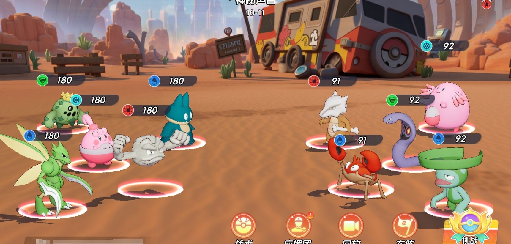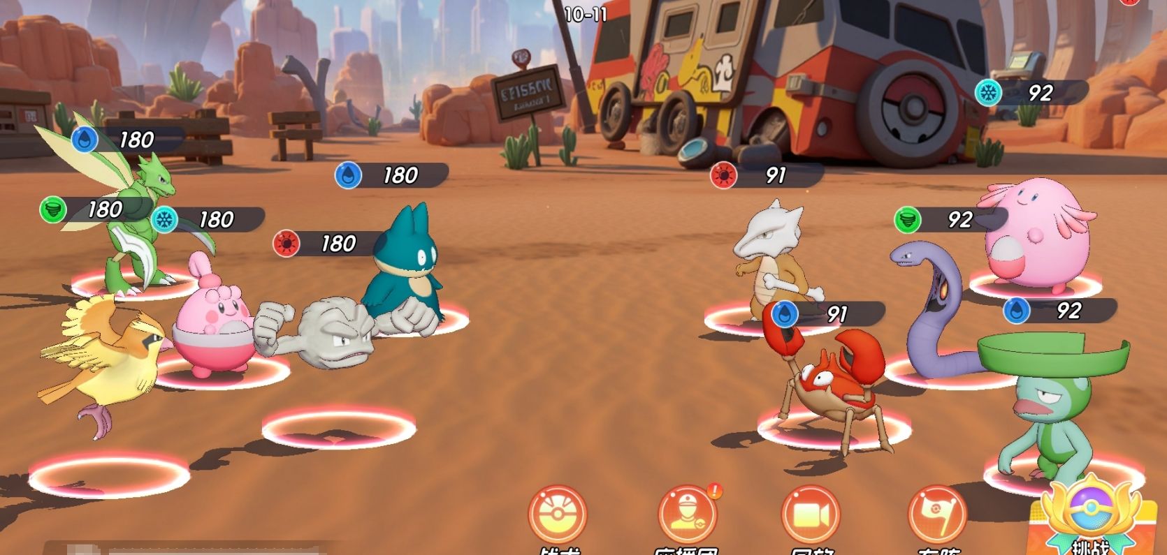 由此可以看出,飞天螳螂的特性是对后排进行突击,所以在配队上更适合与一些能与它一道进行突击的宝可梦进行搭配。在SSR宝可梦中,同样能突进后排的波波、皮卡丘都是很好的选择,它们能与飞天螳螂一道快速完成对敌人后排的斩杀。至于队伍里的其他位置,可用小卡比兽和小拳石组成双前排,再搭配小福蛋为全队提供治疗。