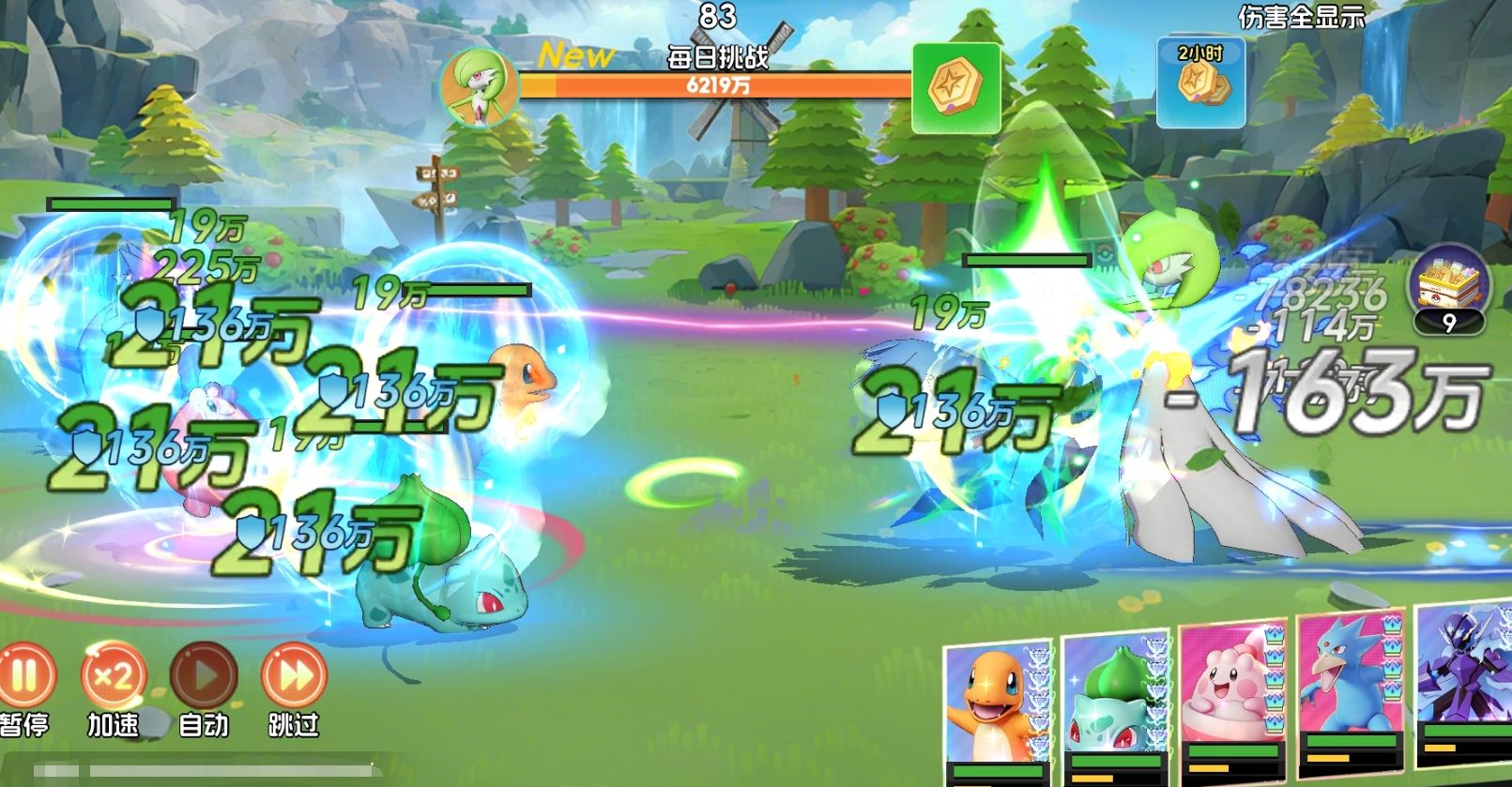 开始战斗后,玩家们会进入战前准备阶段,此时可根据所需挑战的宝可梦boss,来更改自己的挑战阵容,还可进行战术安排和添加应援团,确保自己的阵容能打出更高的伤害。若玩家练的宝可梦比较多,比较建议在此阶段更换一套可对宝可梦boss产生阵营克制效果的阵容,这样能打出的伤害更高。正式挑战时,玩家可开启自动让宝可梦们自行作战,也能直接选择跳过查看本场战斗的结果和宝可梦们打出的最终伤害。