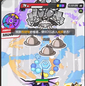 【榴冰蟹】拥有更高的护盾值,当【榴冰蟹】在战场中召唤出3个蟹宴餐盘并使用障眼法交换餐盘位置时,小伙伴们只需要攻击带有螃蟹的餐盘就可以使BOSS进入破盾状态。