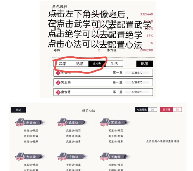 其中前四个和第六个心法都可以在藏经塔里面找到
