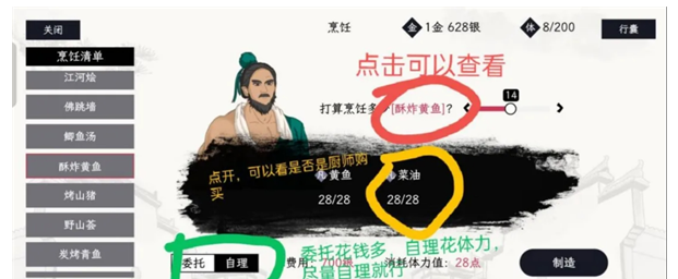 (做东西一定要选择“自理”才涨经验,虽然有概率失败,但是后面生活经验越高,失败率越低,也能做更好的东西)