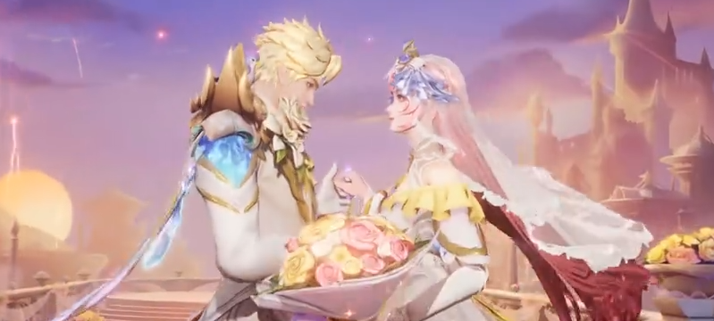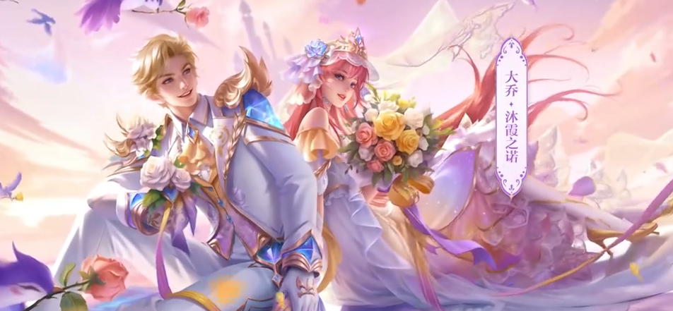 1、品质定位:大乔沐霞之诺皮肤是限定皮肤,整体以白金为底色,层叠设计的短款婚纱,梦幻优雅。粉色披肩长发,搭配镂空皇冠与轻盈头纱,气质温柔。缀以金色荆棘,突显华美格调。武器化作手中三色交织的捧花,与霞光交相映衬。