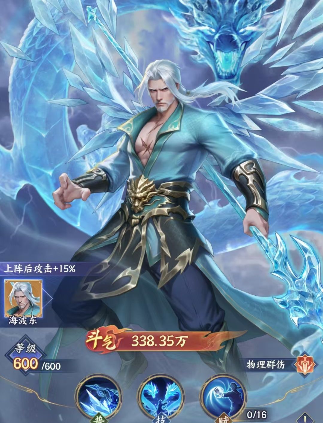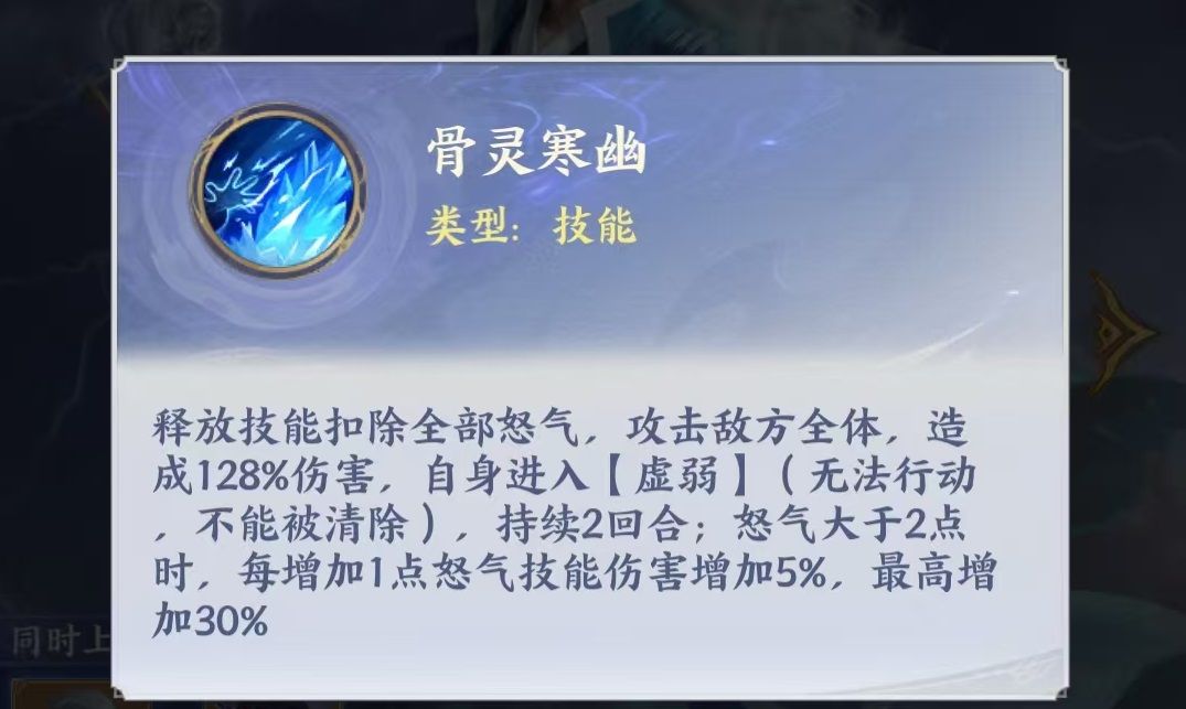 药老属于物理群攻型主C,不设普通攻击,每次行动必释放技能“骨灵寒幽”。该技能需消耗全部怒气值,对敌方全体造成高额伤害;若怒气值超过2点,伤害随怒气总量线性提升。技能释放后,自身将进入持续两回合的虚弱状态。升星后解锁进阶效果:若技能击杀敌方单位,则虚弱时长减少1回合;同时对生命值高于80%的目标额外提升伤害。在羁绊协同方面,与玄衣共同上阵可使药老攻击力提升15%,显著强化其爆发稳定性。