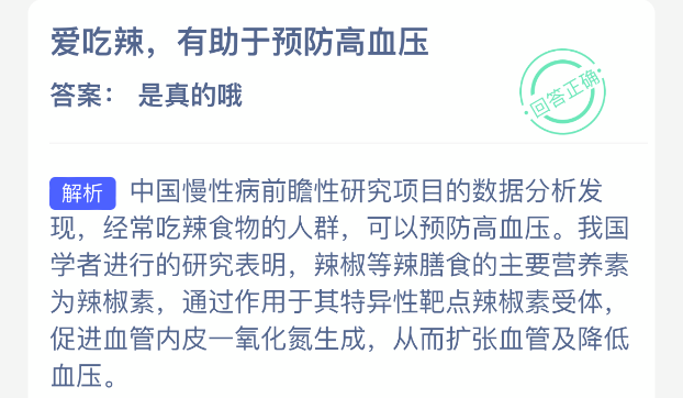 以上就是爱吃辣,有助于预防高血压?支付宝蚂蚁庄园2026年2月24日答案最新,更多相关攻略,请关注3dm手游网更新!