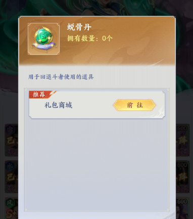 幸运的是游戏就会有资源回溯的途径,这其实就是回退功能。当大家在进入到回退界面时,就会发现6星或者是6星以上的这些角色都可以进行回退操作。回退之后,那就可以获得在升星时所消耗的所有资源,包括同名斗者碎片,还有金币等等,玩家就可以选择去重新的规划资源分配。不过回退斗者并不是免费的,而是需要使用一种特殊的道具,这就是蜕骨丹。这种道具是必备之物,如果没有的话,那就没有办法进行资源回退。