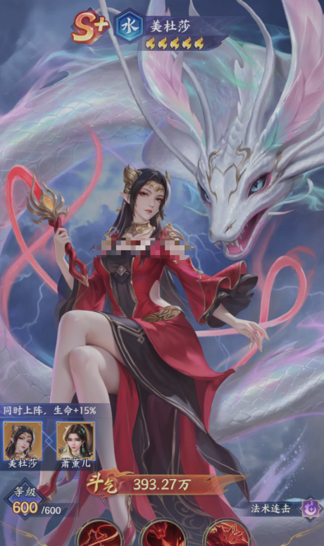 所以她输出的同时也是可以具有回血能力,在续航能力上面,美杜莎前期是非常适合上场的,美杜莎在各类能力都有提升的同时,生存能力的自然就更不用担心了,只要站得住场,她在输出当中是非常适合组队的,而且只要玩好她这几类技能的搭配,强度自然也可以释放出来,美杜莎作为一张橙卡的话,目前在强度上面虽然没有红卡那么高,但是推荐程度还是有的,特别是开荒时期,泛用性比较强,同时达到这样强的威力还是非常适合上场的,如果想要用美杜莎这些能力来搭配整体的阵容,建议大家可以考虑的是萧炎以及萧薰儿。