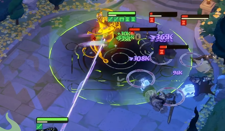 大招名字叫守望之环,包含无敌、范围伤害和晕眩三个效果。这里有个机制要单独说一下,佐尔娅开局会进入休眠状态,这段时间队友是4打5的,等到她从天而降才算正式参战,听起来有点像觉醒斧神的打法。休眠期间她会触发无敌,就算队友全部阵亡,她自己也能靠这个机制把血量和能量回满,然后重新下场。另外,持续给佐尔娅补充能量可以缩短她的休眠时间,这个点在组队搭配上会有一定的发挥空间。