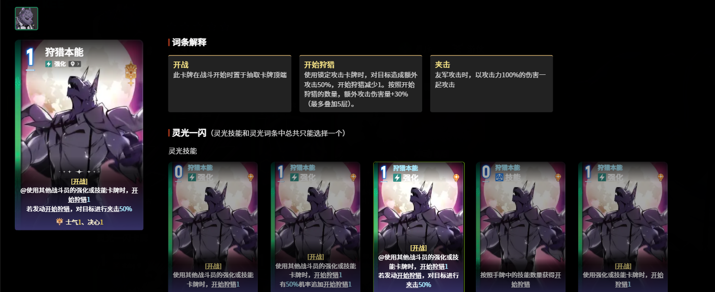 游戏中能够进行额外攻击的主战员有蕾欧娜、百丽儿、雨果等。其中雨果是一个以额外伤害为主要输出手段的四星角色,他拥有特殊的“开始狩猎”buff,可以使他在使用锁定攻击卡牌时对目标造成额外50%的攻击。其“开始狩猎”的层数越高,对敌方能够造成的额外攻击伤害量也就越高。该buff以30%的倍率进行叠加,最大可以打出150%的高额伤害。此外,他的灵光一闪卡牌技能“短剑散射”可以对敌方造成快速且多段的伤害打击,配合上强化卡牌“解决师之道”的话,能够使得他对敌人所造成的额外攻击伤害大幅提升,是一个很好用的攻坚手。此外,他的起始卡牌“狩猎本能”能够让他在队友发起攻击时同时出手,造成一次100%攻击力的额外伤害,所以当他配合拥有高频率攻击特点的特蕾莎时,能够在战斗中打出可观的伤害,泛用性极高。