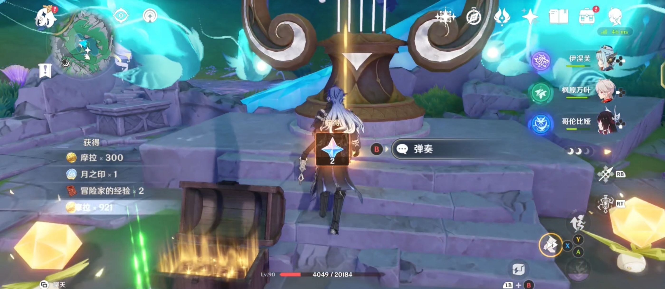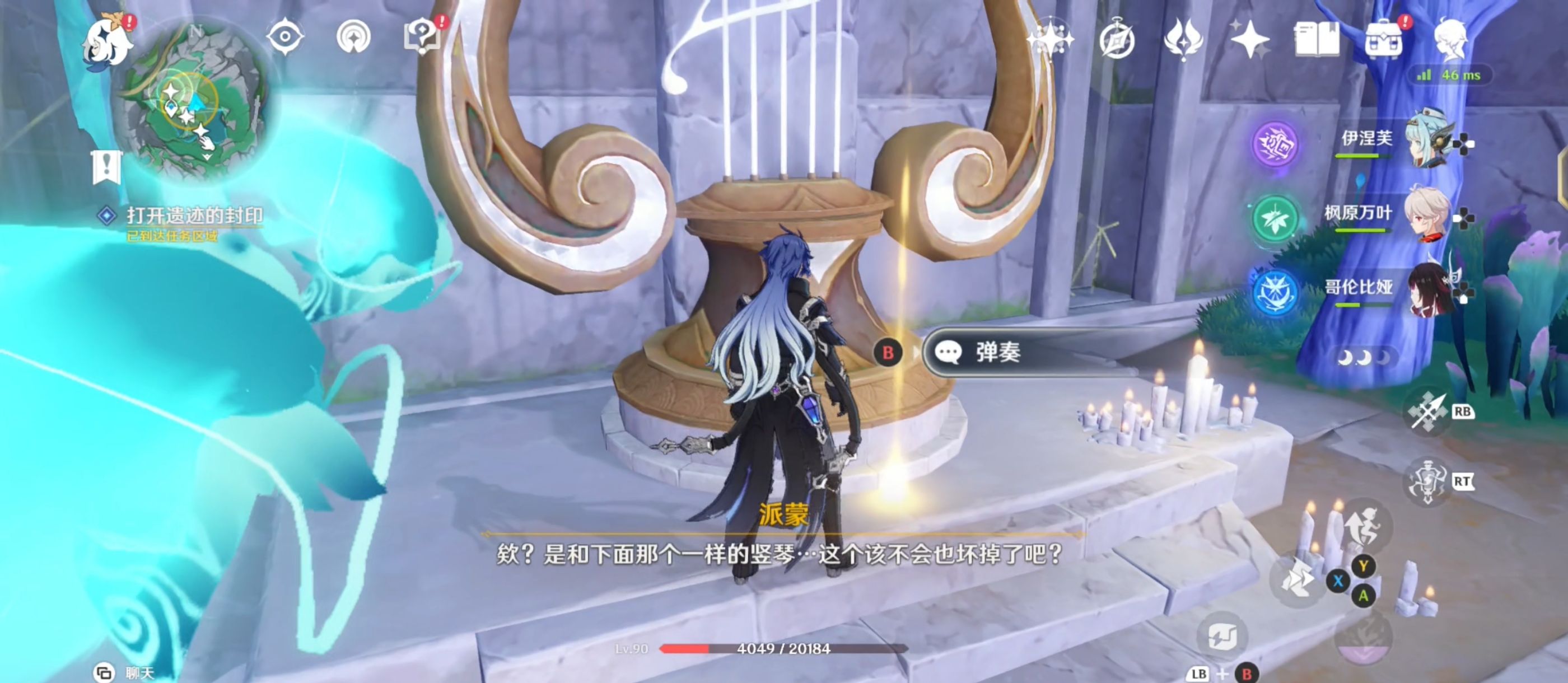 屏障融解后,与内部的竖琴交互并接取任务;接取任务后,利用月灵来到前往任务区域;