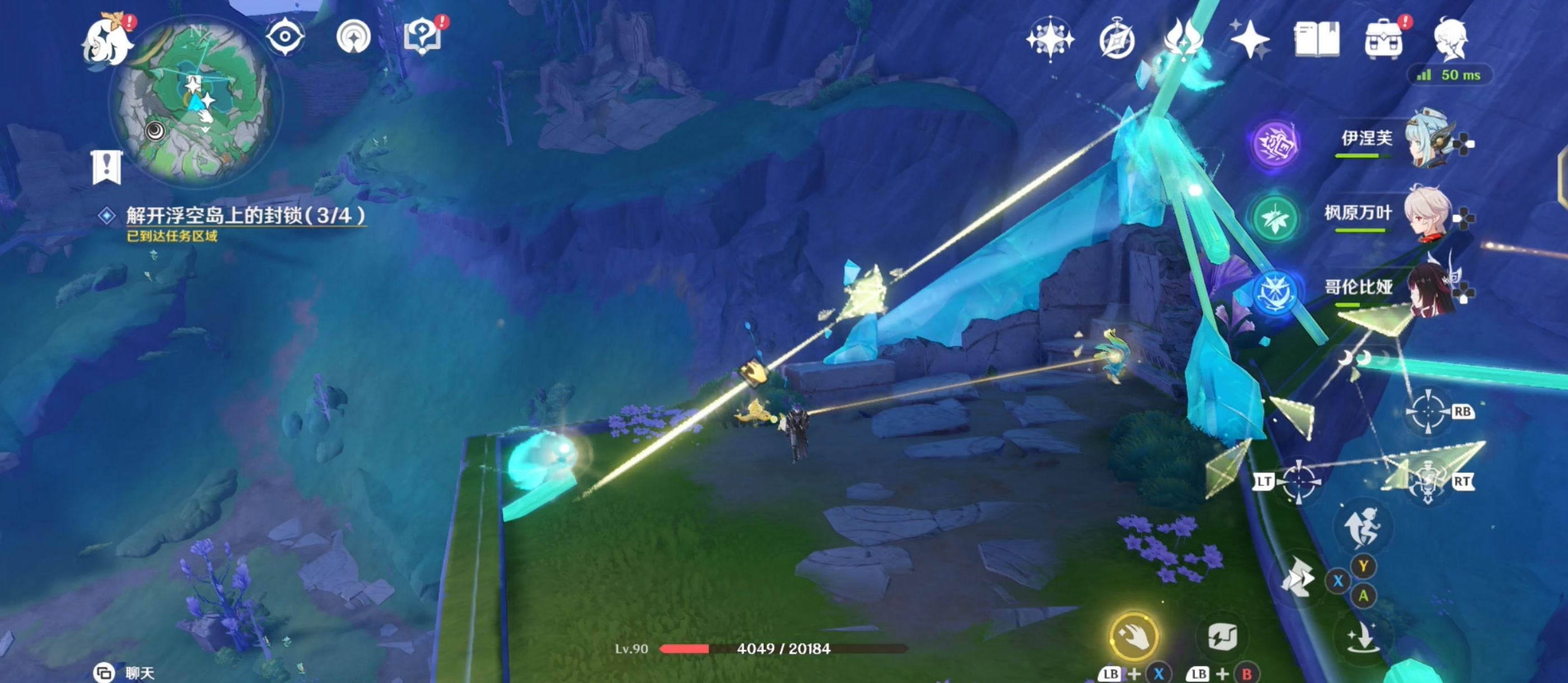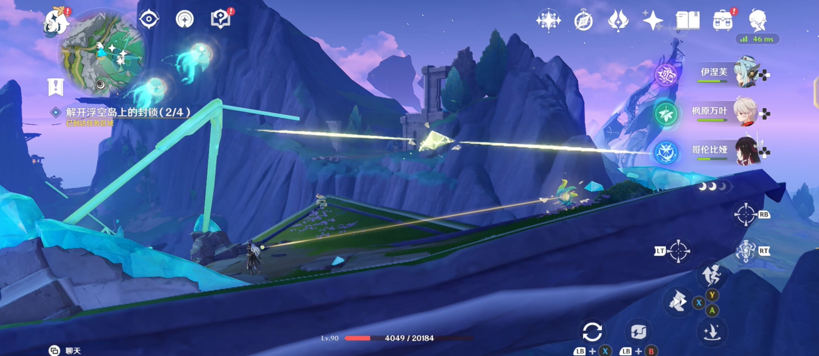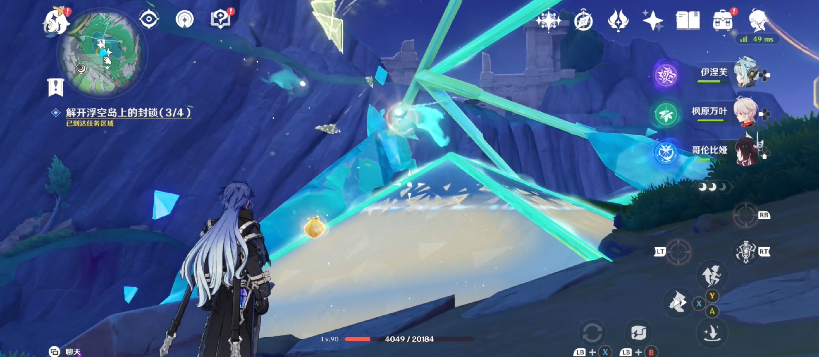 待屏障融解后,通过[璇珑花]对棱镜与管道之间的连接进行三次调整,完成后出现精致宝箱,并跟随仙灵前往【任务区域四】;